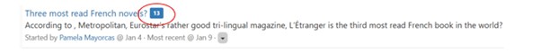 In the example below, you can see that there are 13 messages with the title “Three most read French novels?”
